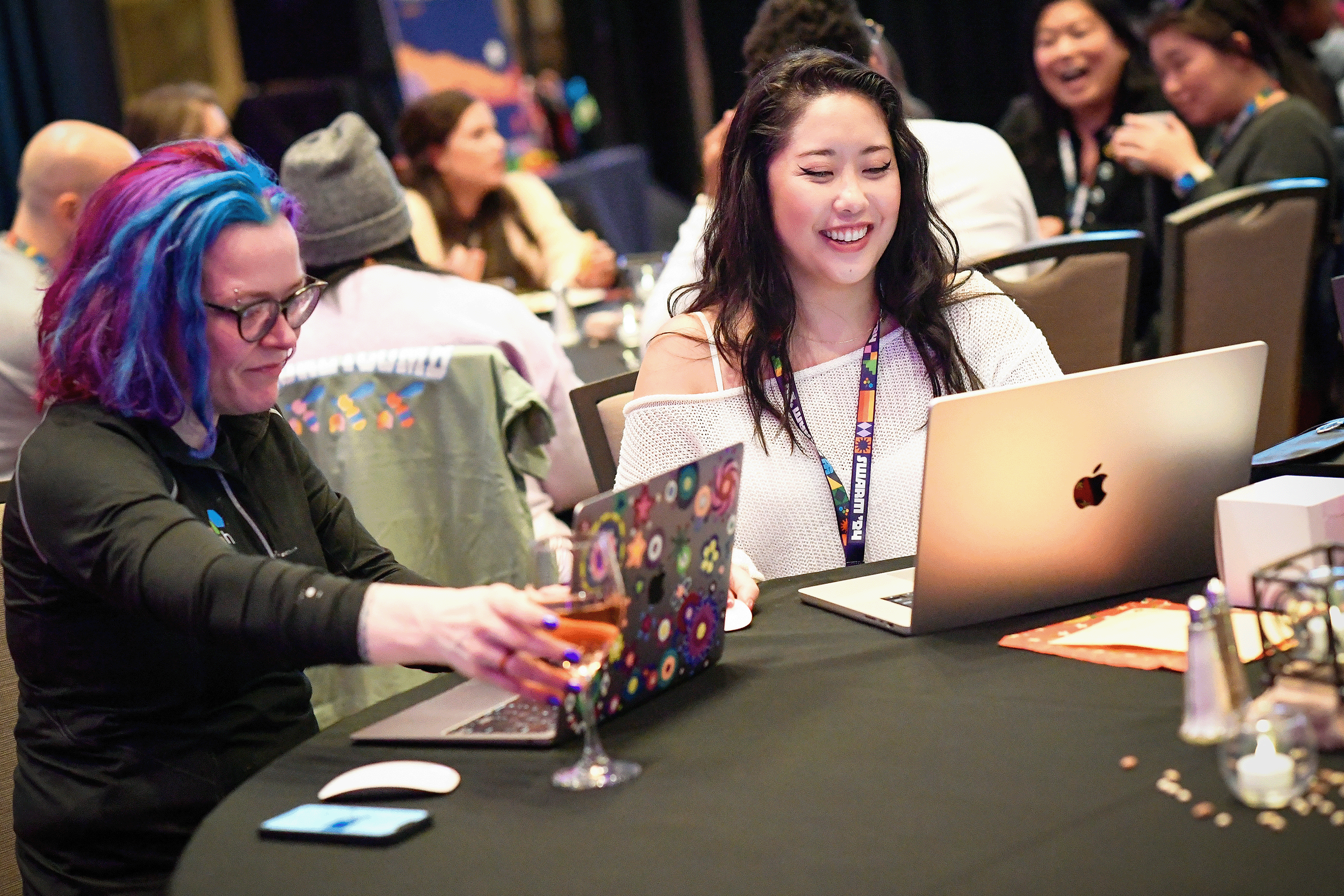 Event Branding, Swag (shirts, lanyards, badges, waterbottles, hoodies, socks, notebooks, stickers, postcards), Signage, Keynotes and Deck Templates, Landing Pages