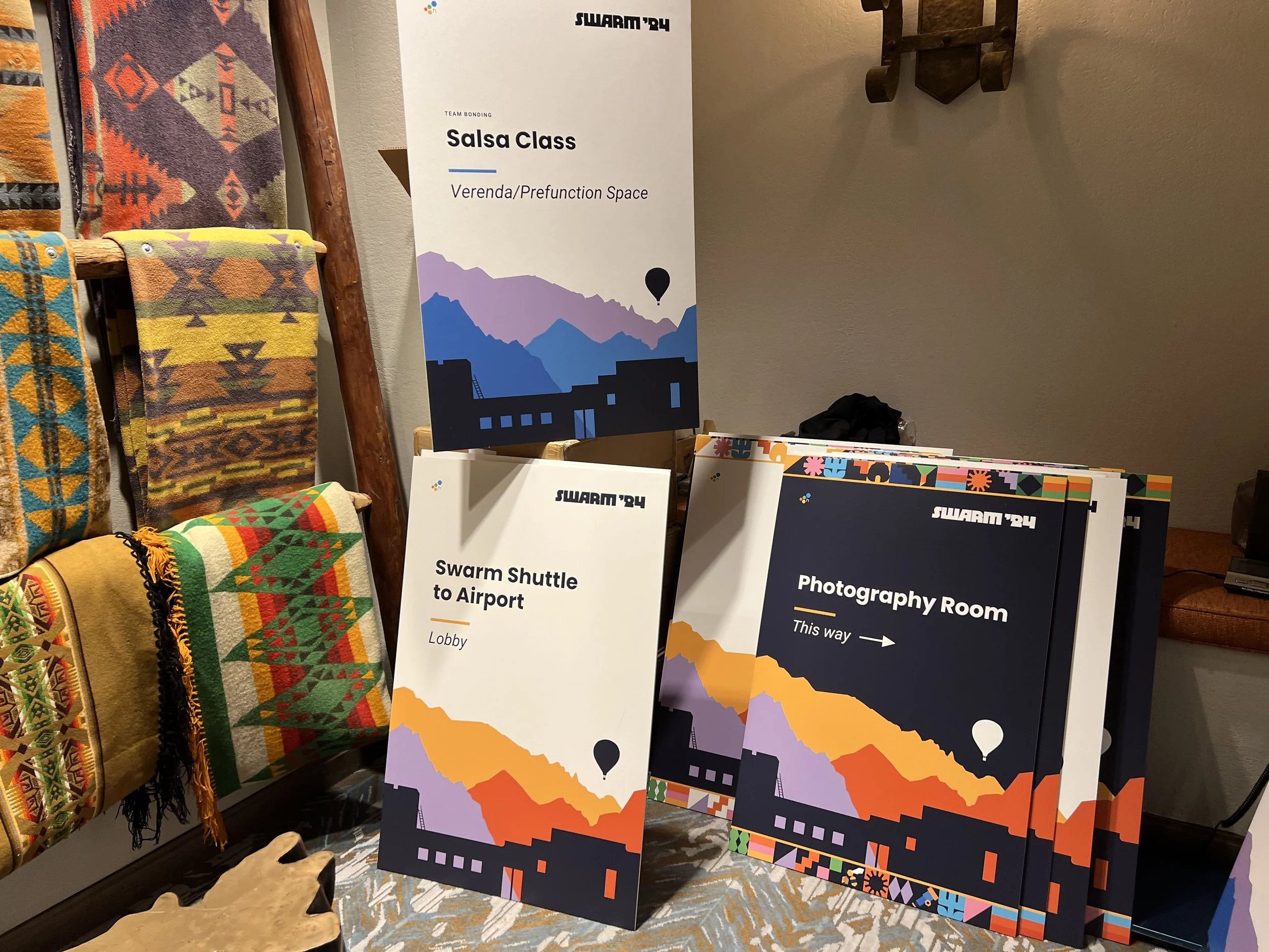 Honeycomb’s annual multi-day conference for vendors, partners, and employees. Swarm 2024 had over 250 attendees. The branding was heavily inspired by the artisans of the Santa Ana Pueblo and features the location of the event, the Tamaya Resort and the Sandia Mountains. I led creative for the project and worked with the Leadership, People, and Marketing teams, designing over 200 individual assets.